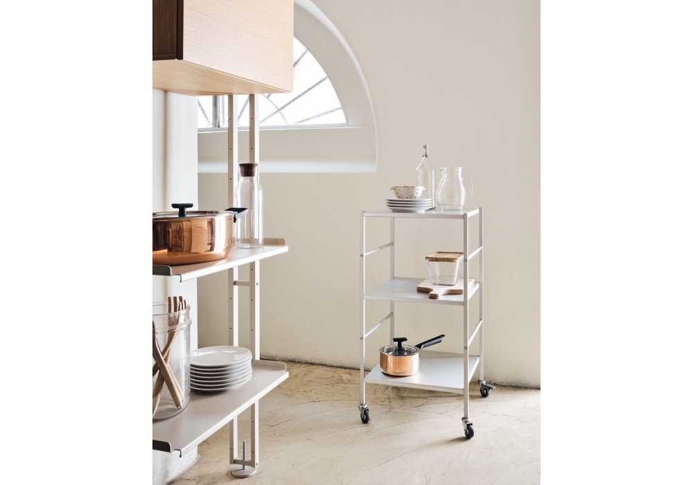 The collection of trolleys designed by Kriptonite is made with an anodized aluminum structure with wheels, two of which are braking. Available in different dimensions.