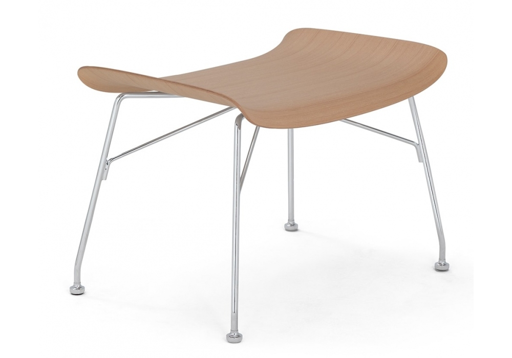 S/Wood designed by Philippe Starck for Kartell is a footstool made with chromed or black painted steel structure, seat in Basic veneer curved wood or slatted ash. Available in different finishes.