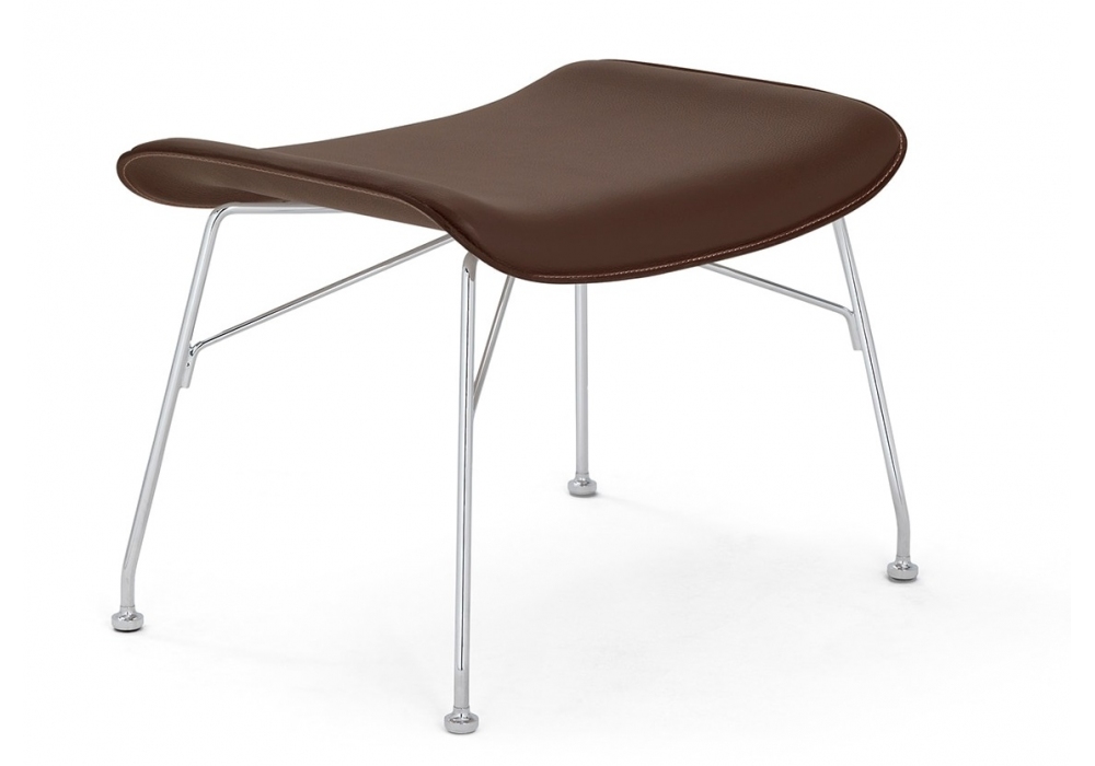 S/Wood designed by Philippe Starck for Kartell is a footstool made with chromed or black painted steel structure and leather seat. Available in different finishes.