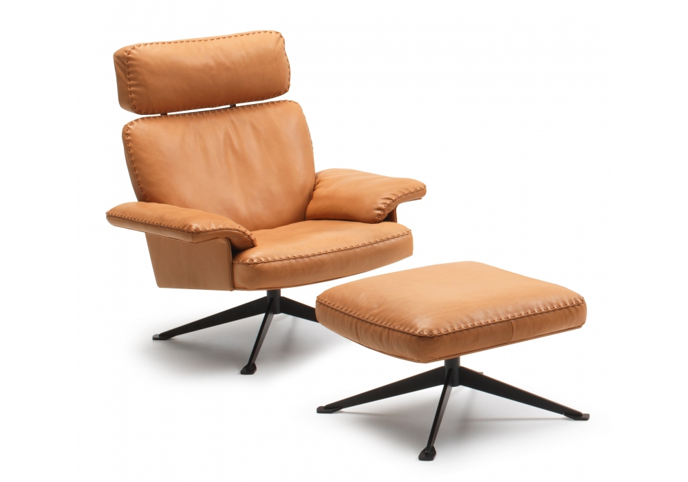DS-31/105 designed by de Sede Design Team for De Sede is a footstool made of leather with substructure in black upholstery. The side seams are hand-sewn. Available in different finishes.