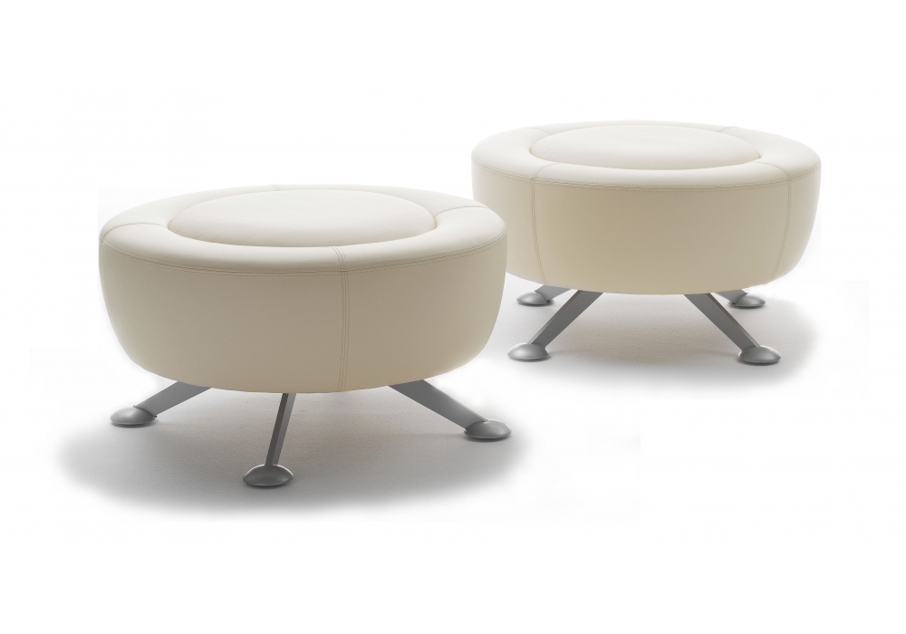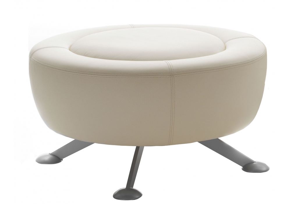 DS-164/05 designed by Hugo de Ruiter for De Sede is a round footstool with leather upholstery and metal legs available in two versions.