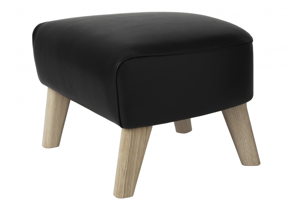 My Own Chair designed by Flemming Lassen for Audo Copenhagen is an ottoman made in leather or fabric, legs in natural or dark stained walnut or oak. Available in different finishes.