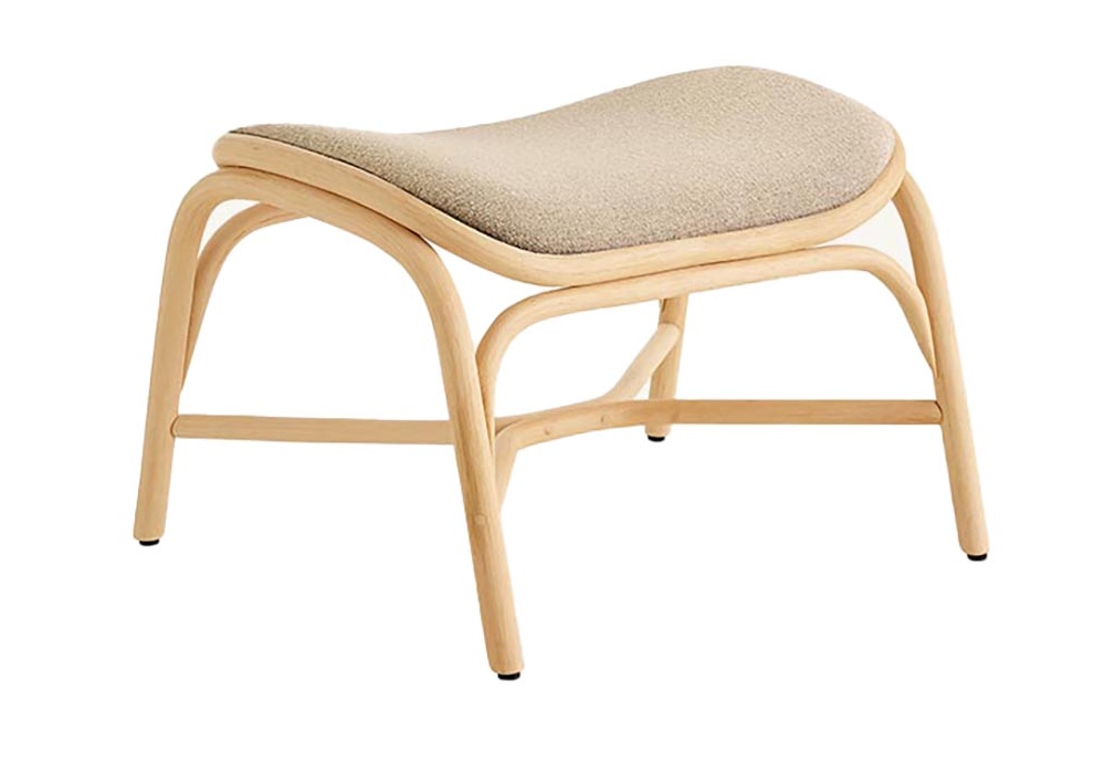 Huma designed by Mario Ruiz for Expormim is a small armchair made with structure and backrest made of colored natural rattan, metal swivel base. Upholstered seat. Available in different finishes.