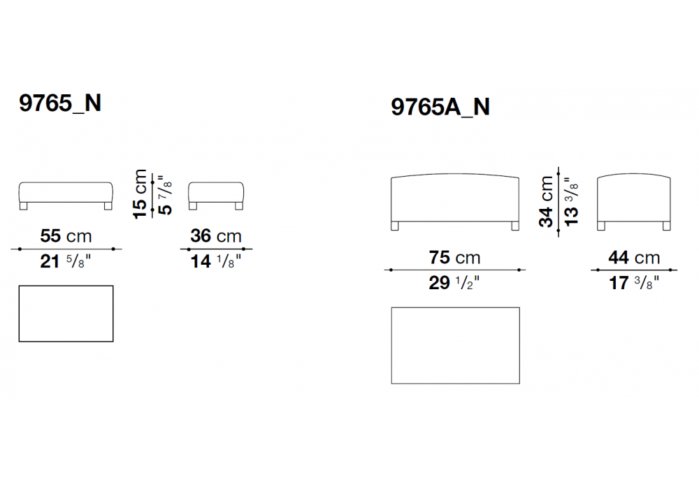 | Dimensions | 55 x 36 x H 15 cm; 75 x 44 x H 34 cm. |