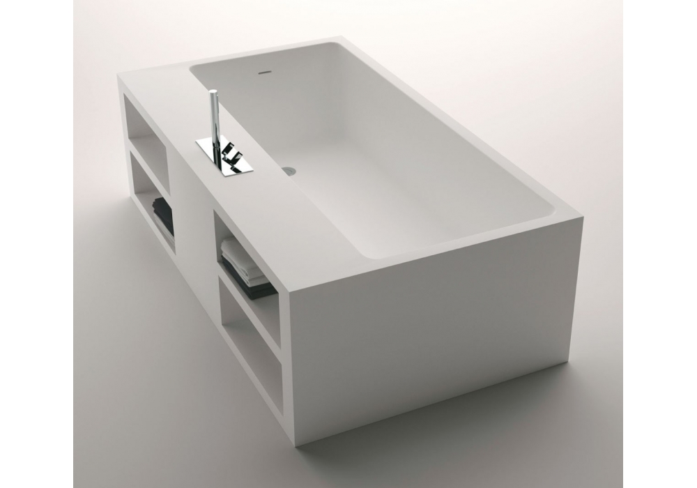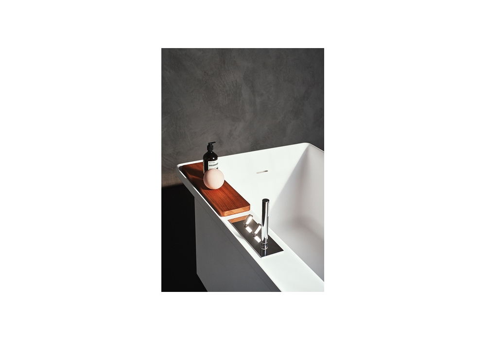 Square designed by Benedini Associati for Agape is a bathtub rim tap made of polished or satin AISI316L stainless steel. It consists of a progressive single-lever mixer and built-in shower (flexible hose and shower included).