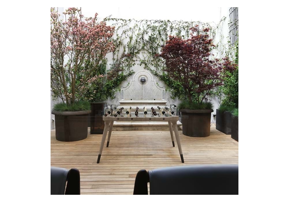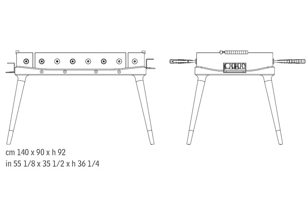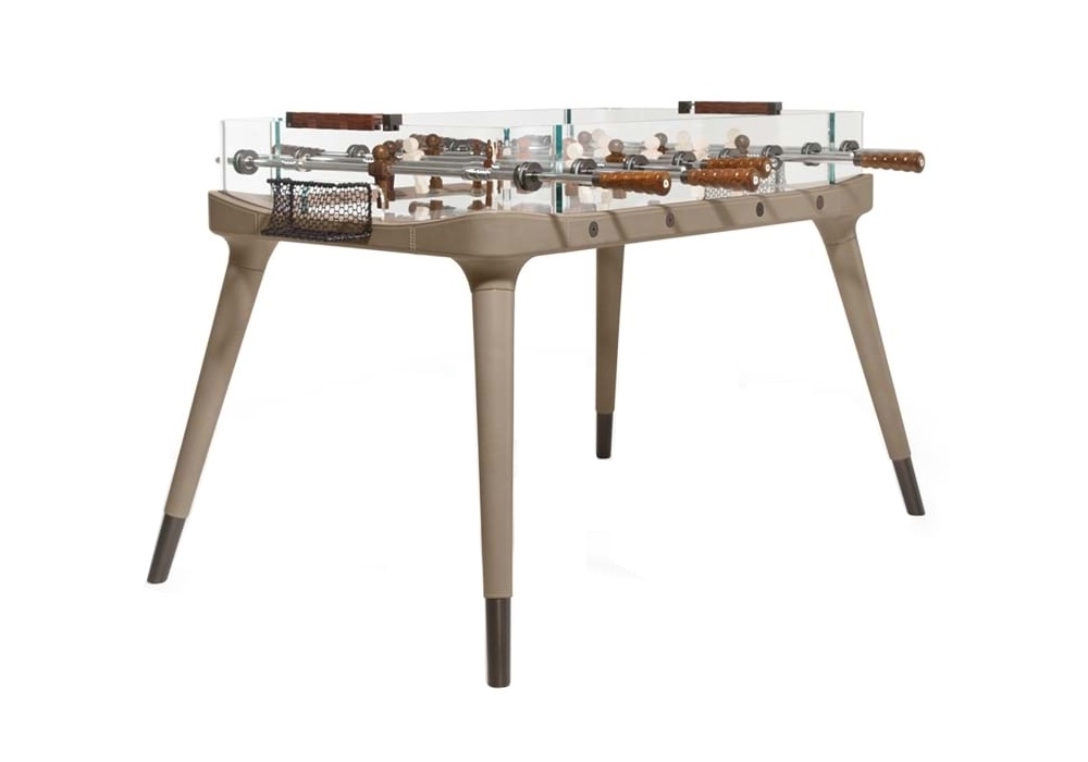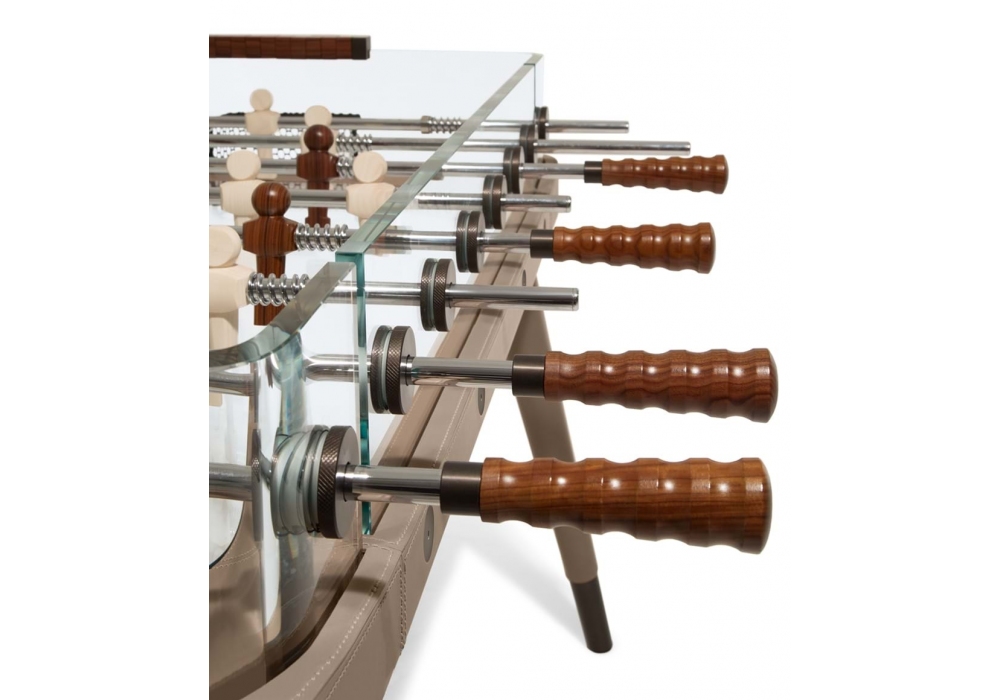 90 ° Minuto designed by Adriano Design and Centro Ricerche Giorgetti for Giorgetti is a table football made with legs and frame, leather upholstery in different shades, tip and bushings in bronzed aluminum.