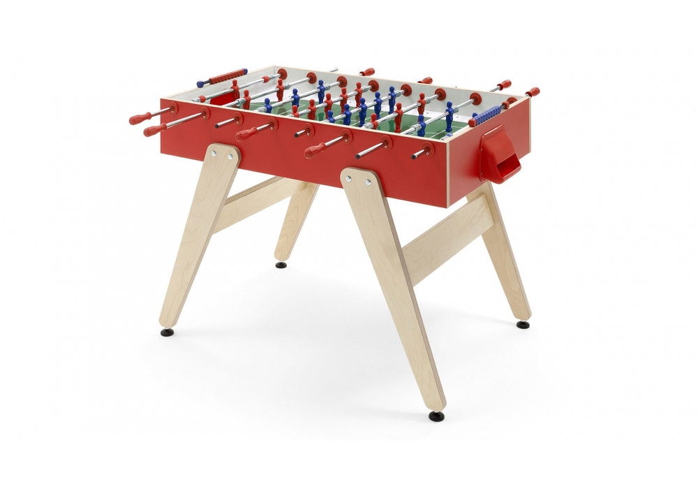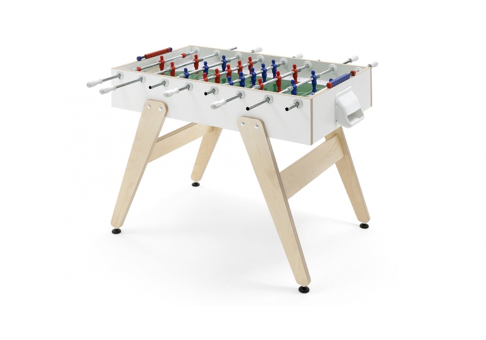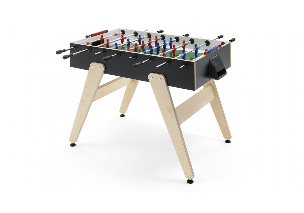 Cross Outdoor designed by Basaglia + Rota Nodari for Fas Pendenza is a quadrangular outdoor table football table with a high-resistance tempered glass playing field. The cabinet is made of MDF covered in plastic laminate. The legs are in natural birch plywood with adjustable feet. Cross Outdoor is available in different finishes and shaft versions, supplied with 5 white game balls.