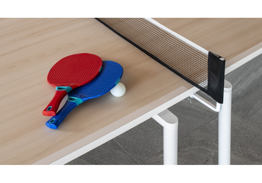 Spider designed by Basaglia + Rota Nodari for Fas Pendenza is a quadrangular-shaped ping pong table with a playing field structured by two pieces of agglomerated wood. The structure is in metal with a four-legged base. Spider is painted entirely in white and comes with 2 rackets and 6 balls.