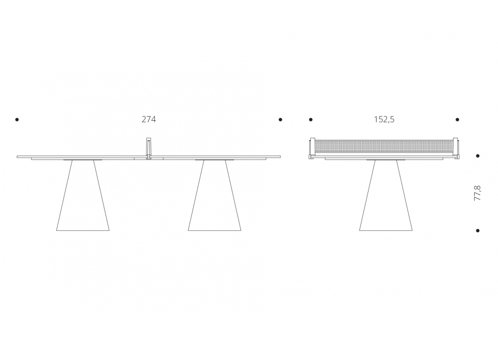 Dada designed by Basaglia + Rota Nodari for Fas Pendenza is a quadrangular-shaped ping pong table with a playing field structured by two wooden pieces. The structure is in metal with a base made up of two large conical-shaped legs in painted metal. Dada is painted entirely in white and comes with 2 rackets and 6 balls.