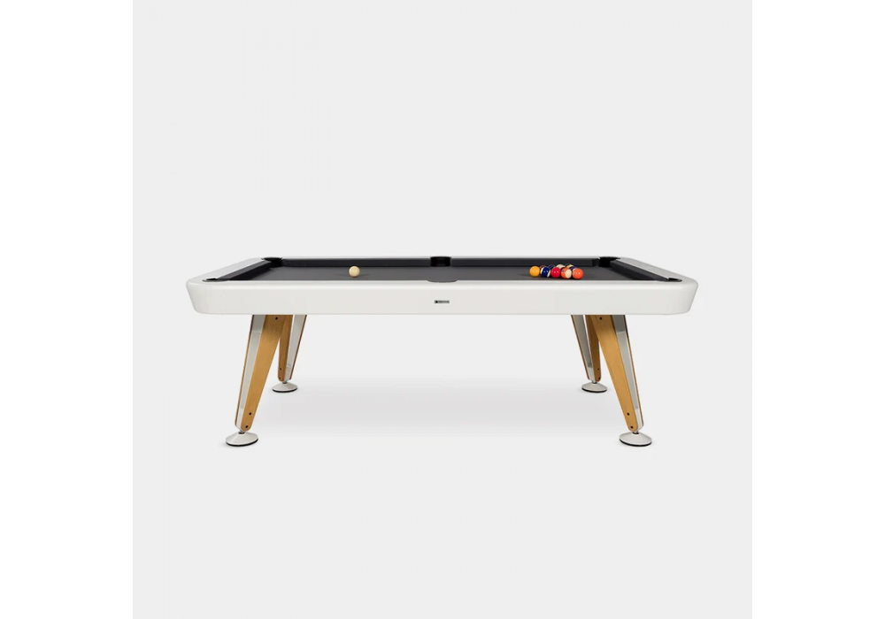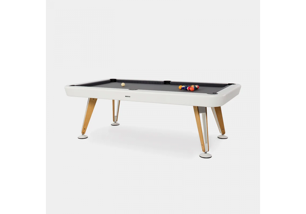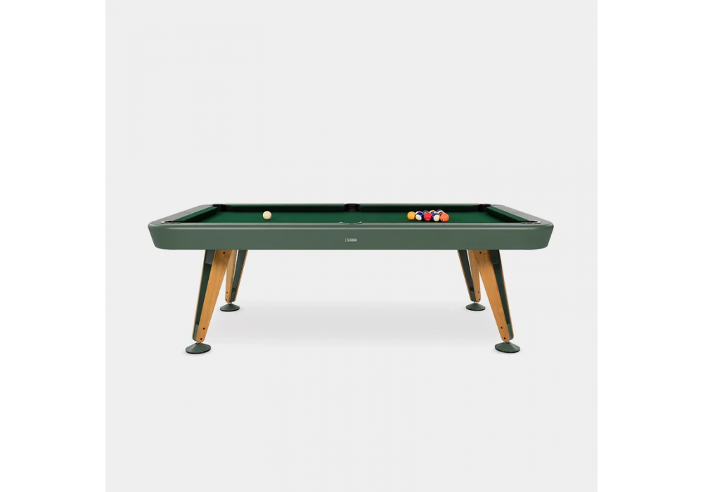 Diagonal Indoor designed by Yonoh for RS Barcelona is a pool table made with a steel structure with micro-textured polyester powder paint. Top in Gorina fabric, combed wool and nylon and legs in steel and wood. Available in different finishes and dimensions.