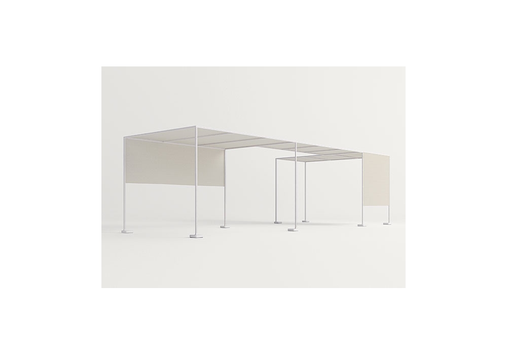 Resort designed by Metrica by Bruno Fattorini and Robin Rizzini for Paola Lenti is a flexible and modular architectural structure, with matt painted aluminum structure, ground support in matt painted pressed cast iron in the same color as the structure. The upholstery is available in different fabrics and colours. Resort can be placed on the ground or anchored to load-bearing surfaces. Configure your Resort structure as you prefer, with the support of our Customer Service.