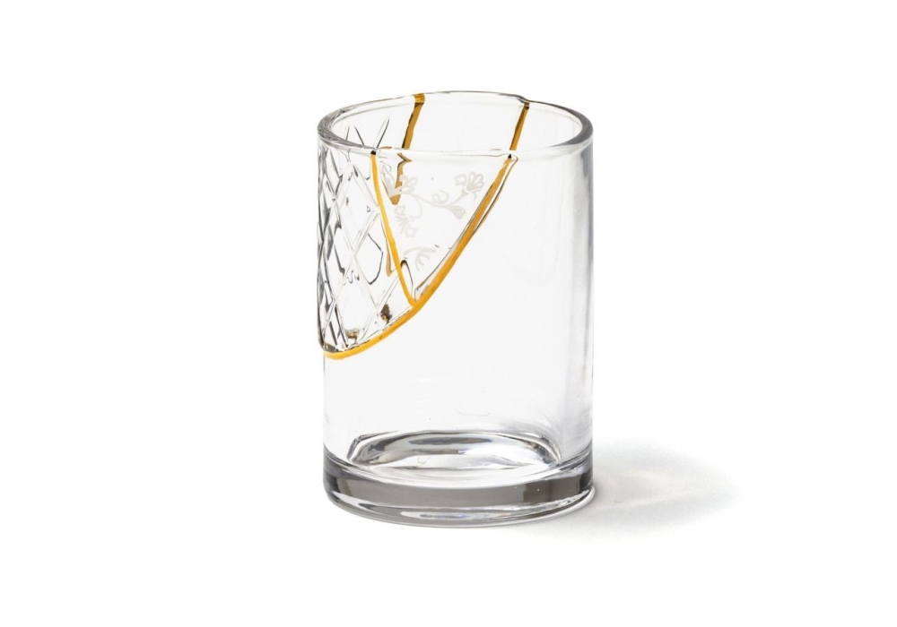 Kintsugi N°2 designed by Marcantonio is a set of 2 glasses in transparent glass with gold-colored details.