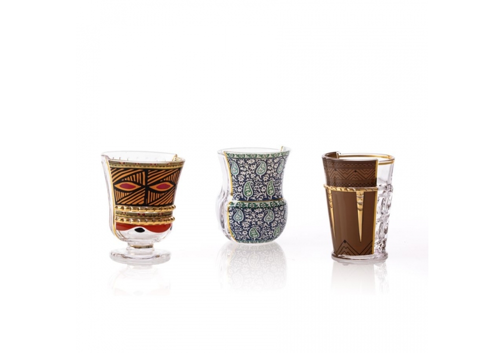 Hybrid Rodinia designed by CTRLZAK is a set of glass glasses made by combining two opposing shapes. The surface is half decorated and half transparent with a lined surface.
