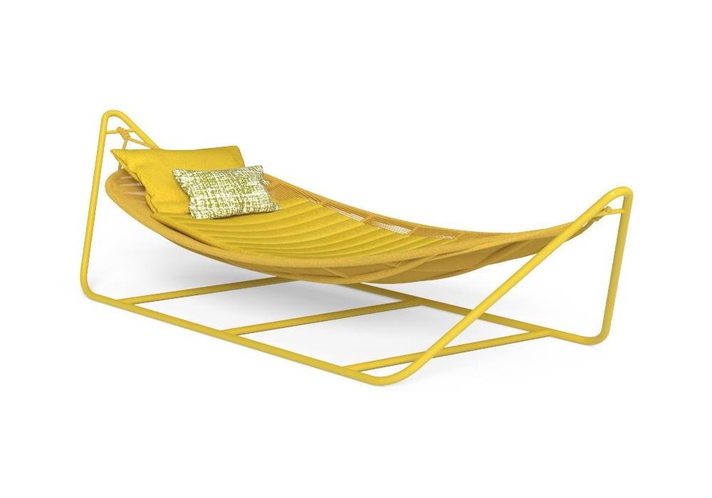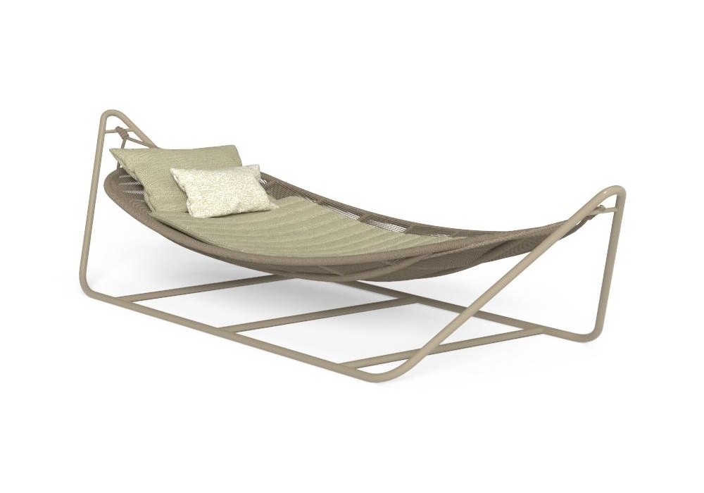 Panama designed by Ludovica and Roberto Palomba for Talenti is a hammock with aluminum structure and synthetic nautical rope available in various colors, cushion in various finishes.
