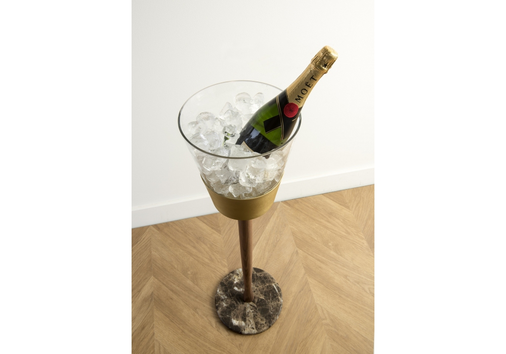 Champagnera conçu par Andrés Martinez pour Nomon est un meuble bar avec structure en noyer naturel ou avec finition en frêne noir, plateau en marbre en différentes finitions.