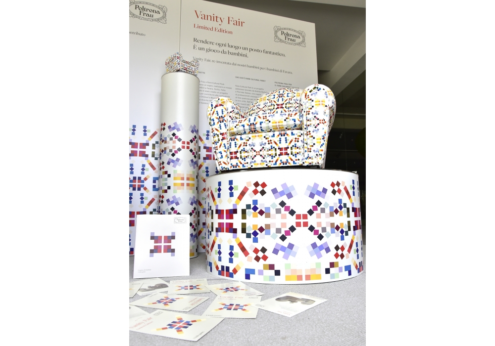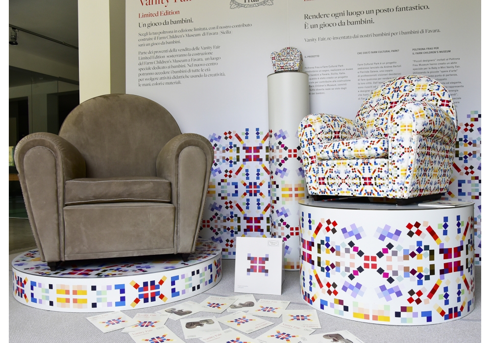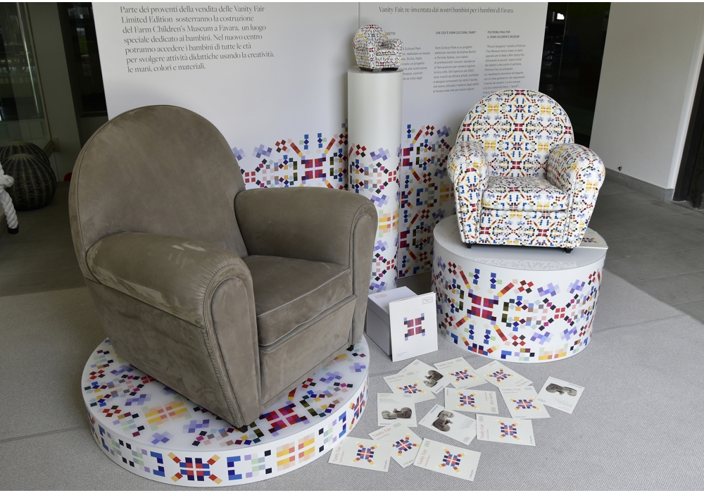 Baby Vanity Fair designed for Poltrona Frau is a limited edition children's armchair upholstered in SOU fabric. With metal plate.