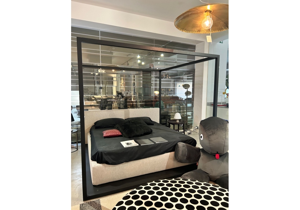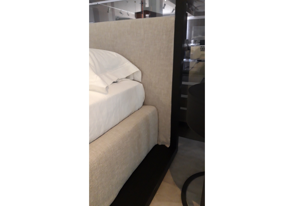 Alcova designed by Antonio Citterio for Maxalto is a canopy bed with brushed black oak structure. Headboard and bed frame upholstered in Solaris 280 fabric. Bed for 180 cm mattress (ACLE2_A).