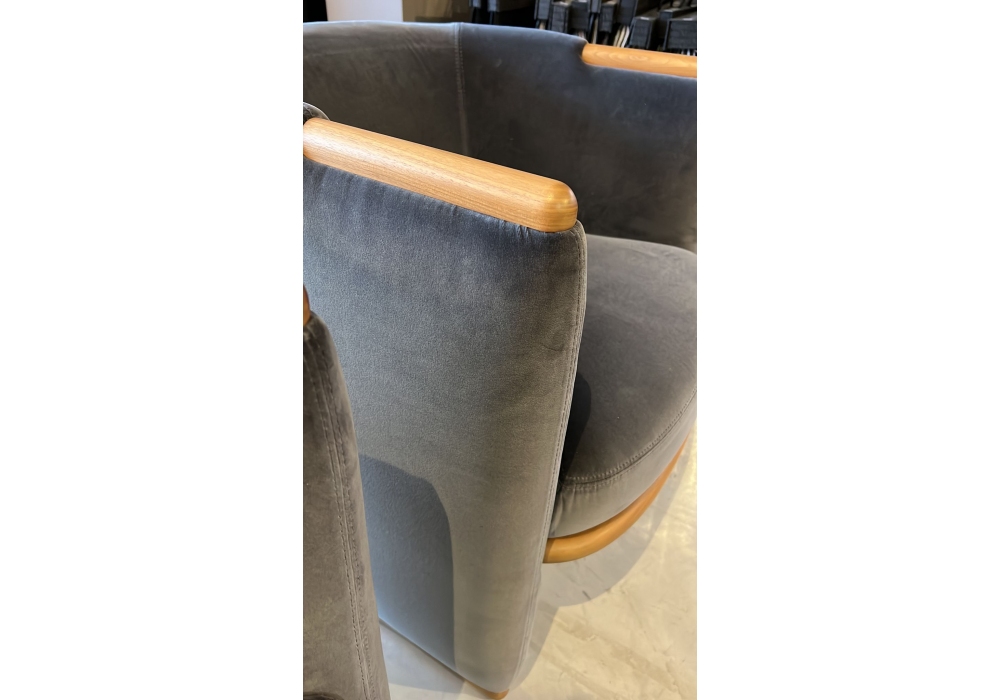Opus designed by Carlo Colombo for Giorgetti is an armchair with inserts made of solid Canaletto walnut and upholstery in fabric.