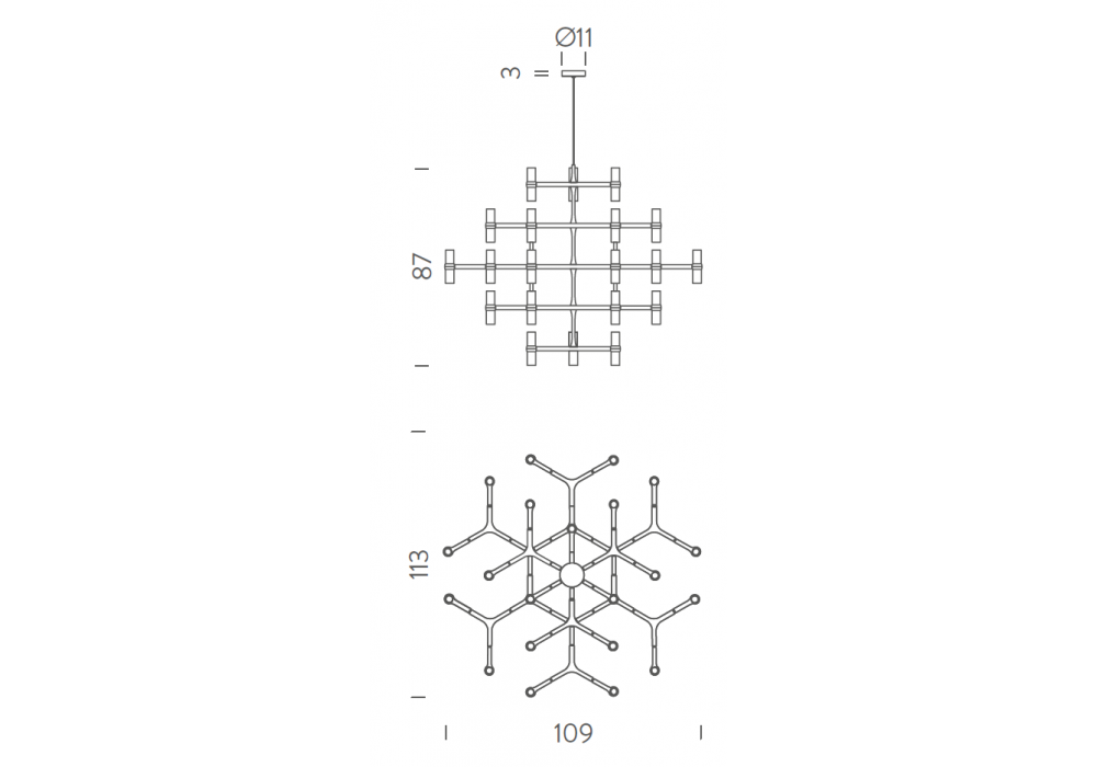 Crown Major designed by Jehs+Laub for Nemo is a chandelier with modular structure in diecasted aluminium and satin glass diffusers.