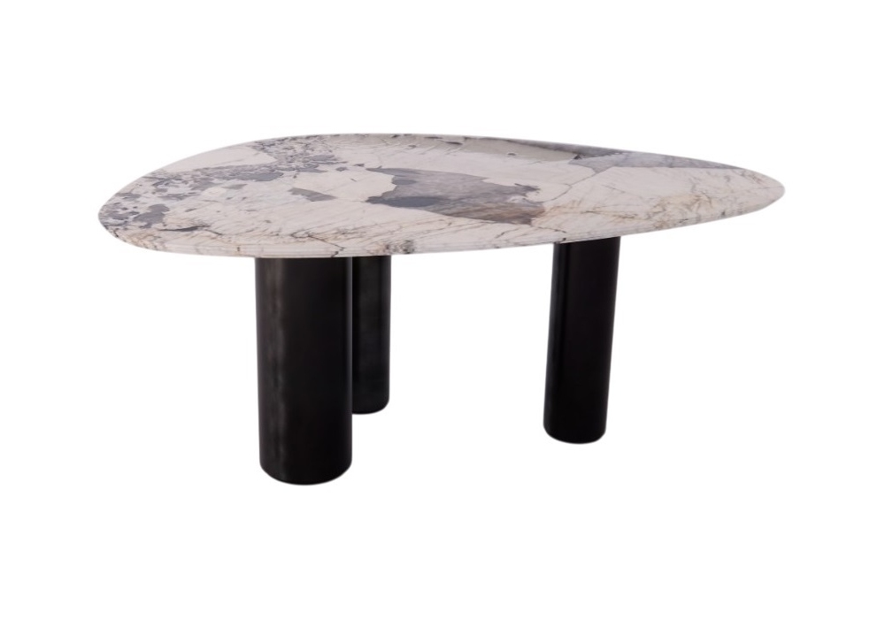 Lagos designed by Baxter P. is a table with Patagonia stone top and antiqued iron legs.