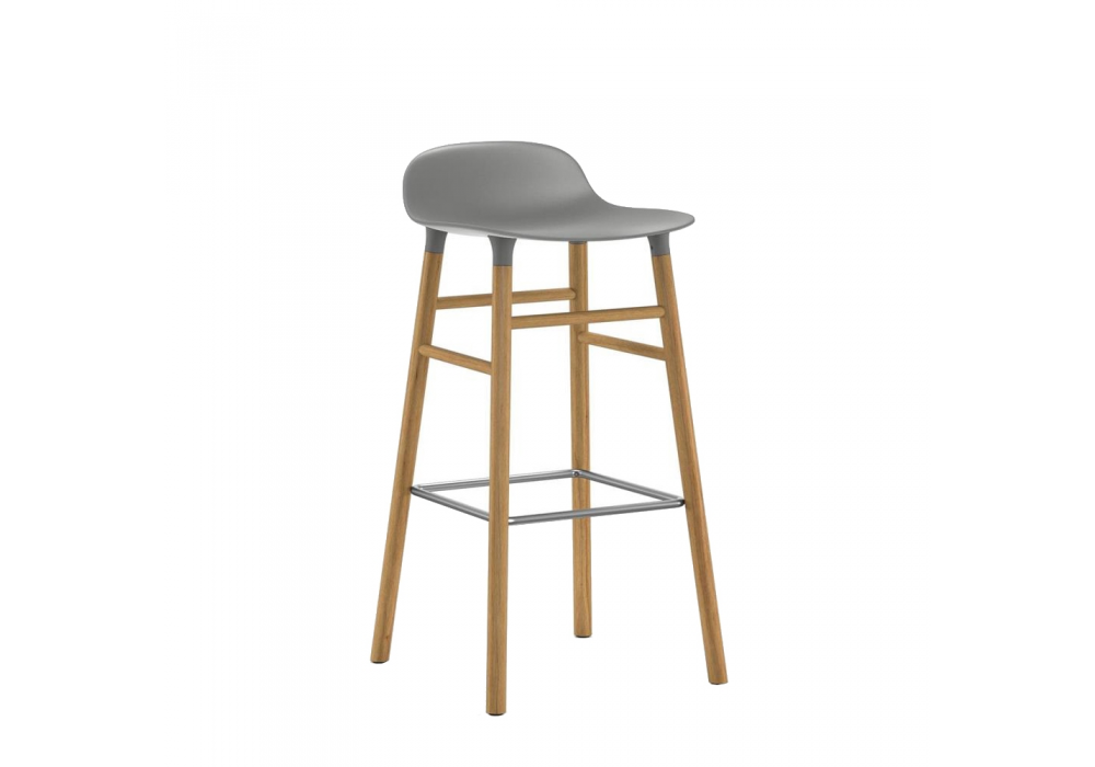 Form, designed by Simon Legald for Normann Copenhagen, is a collection of seats, available height 77 cm with shell in gray finish and with natural oak frame.