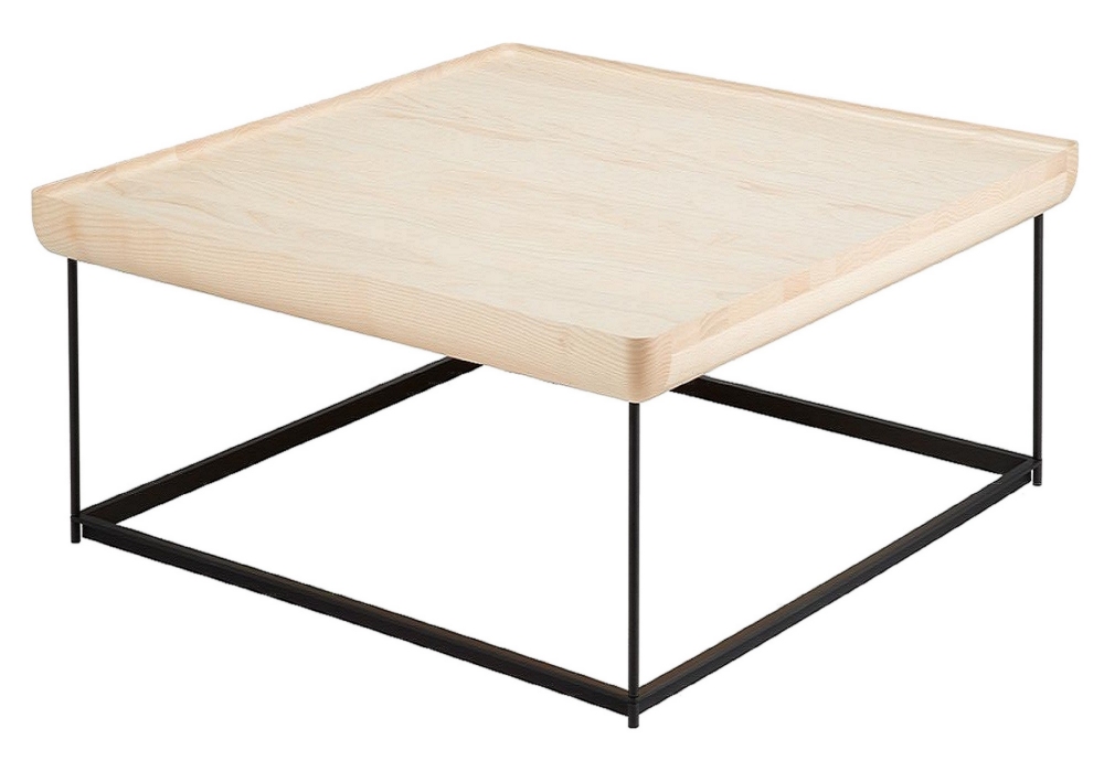 381 Torei designed by Luca Nichetto for Cassina coffee table with square top in natural ash and black marquina marble, structure in matt black.