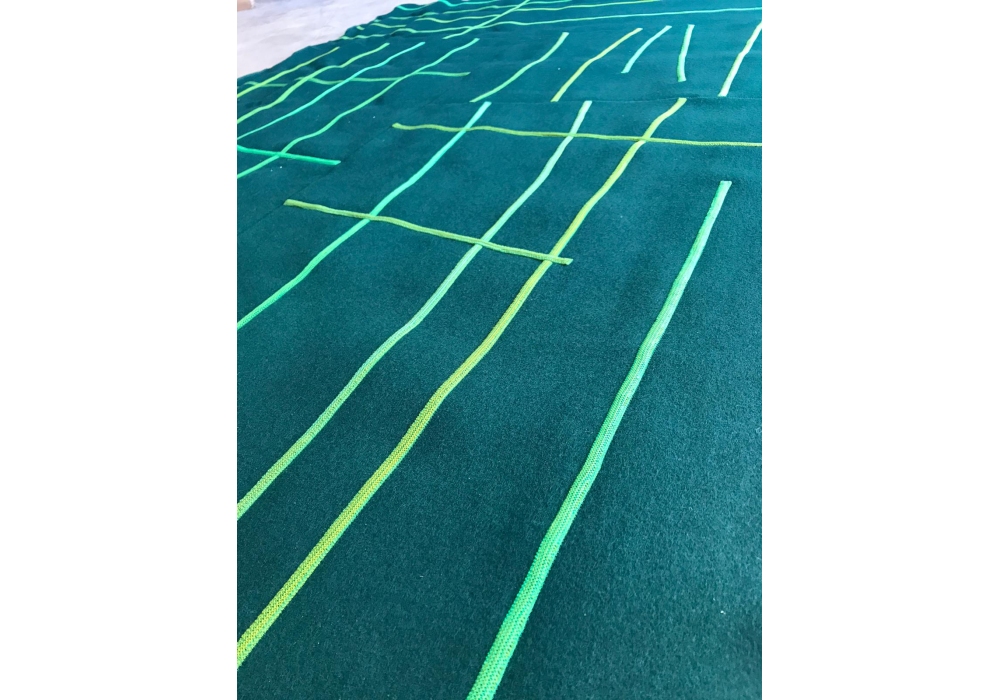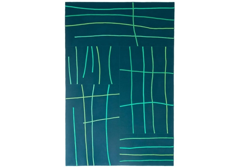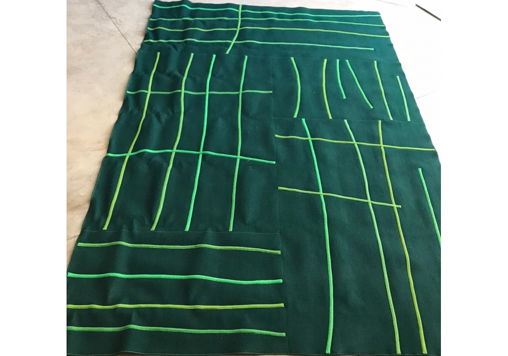 Rilievo designed by CRS Paola Lenti is a rug made of felt elements with different dimensions and same colour, with an appliqued design. Wool cords in different colours are sewn with different inclinations on each element composing the rug's surface with Punto Zigzag, according to a pre-determined pattern.