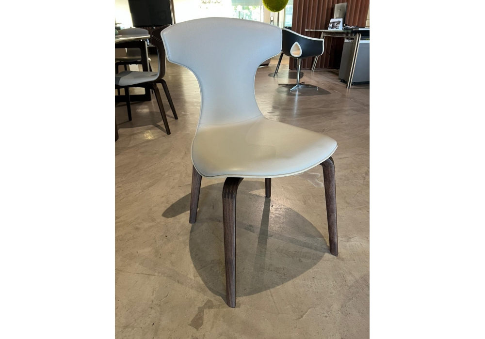 Montera designed by Roberto Lazzeroni for Poltrona Frau is a chair with legs made of ashwood in a moka stain, internal part of the shell covered in Pelle Frau® leather SC and external surface in Pelle Frau® leather or Cuoio Saddle Extra.