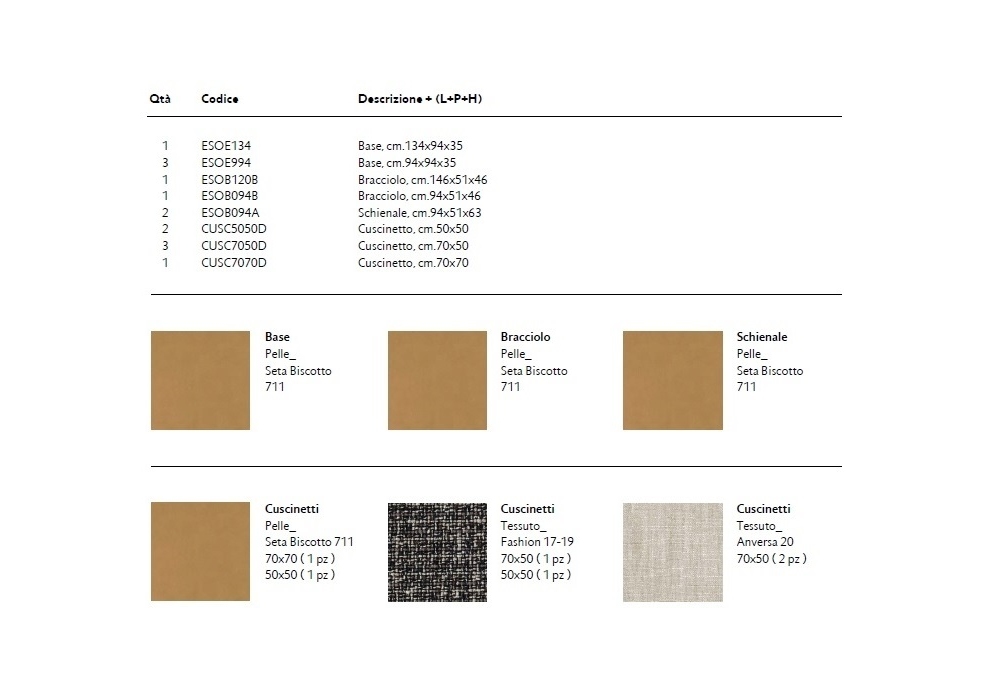 | Decorative cushions | n. 1 70x70 cm; n. 2 50x50 cm; n. 3 70x50 cm. |