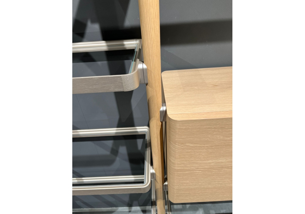 Hector designed by Vincent Van Duysen for Molteni&C is a modular bookshelf made with uprights and container with Sunrise oak door and transparent glass shelves with Iris finish frame.