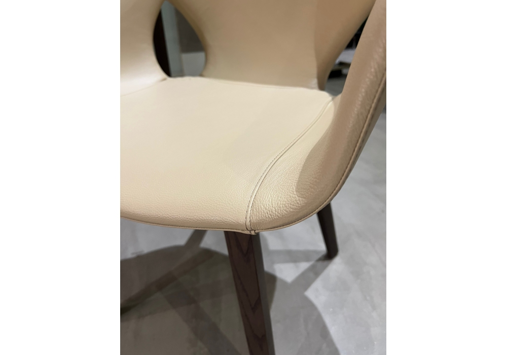 Ginger Ale designed by Roberto Lazzeroni for Poltrona Frau is a small armchair with wood legs and shell made of molded composite thermoplastic polymer padded with polyurethane foam and fully upholstered in Pelle Frau leather.