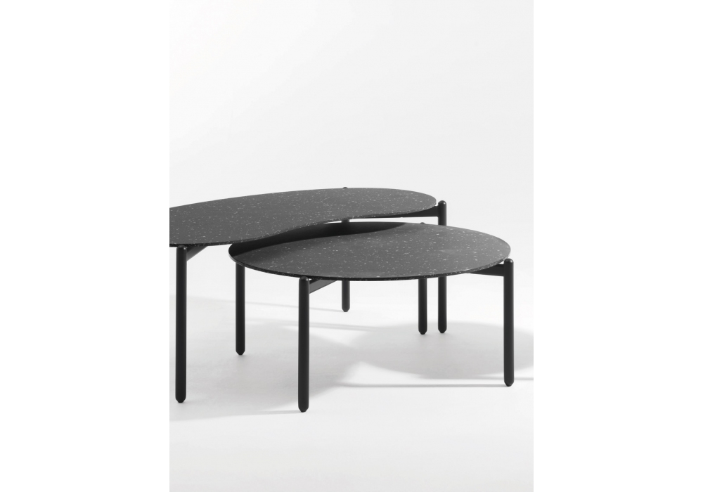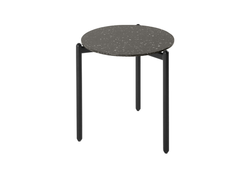 Undique designed by Patricia Urquiola for Kartell is a side table made with black painted steel structure and Terrazzo stoneware top. Available in different dimensions.