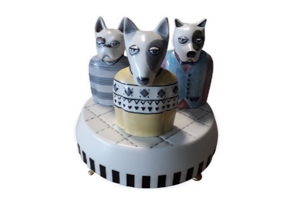 I Molossi designed by Elena Salmistraro for Bosa is a music box in ceramic, in which the traditional horses have been replaced by cute Molossian mastiffs: man's best friend thus becomes a symbolic guardian who accompanies us through life, together with the music that takes us back in time.