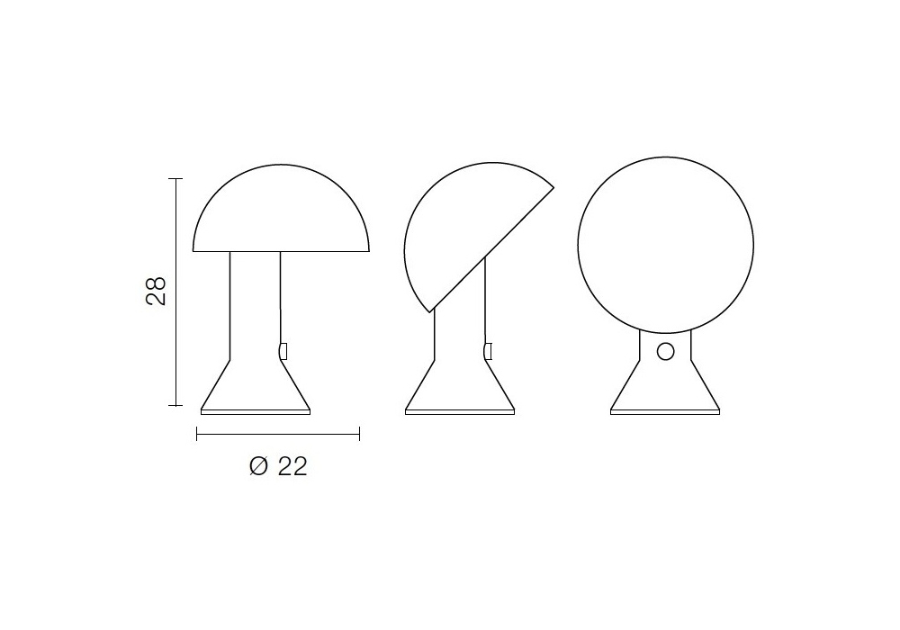 Elmetto designed by Elio Martinelli for Martinelli Luce is a table lamp with direct light. Adjustable reflector, diffuser material and resin structure.
