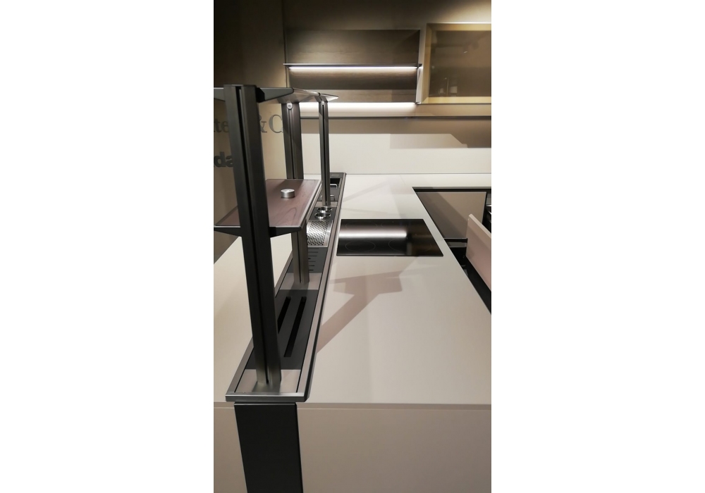 Prime /XY designed by Molteni&C & Francesco Meda is a kitchen designed to express the full potential of a kitchen featuring recessed opening. The finger recess runs seamlessly the length and breadth of the product and ends on the side panels, an alternative solution to the finished sides, offering ample scope for personalization. The Prime door is shaped at the top at 45° to make opening simpler and more ergonomic. Structure in slate melamine. Finish: Silk Tortora laminate. Type of drawers: Scala Night. Foot height: 60 mm.