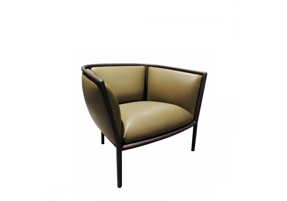 Margou designed by Vincent Van Duysen for Molteni&C is an armchair made with structure in solid wood stained eucalyptus, and upholstery in leather (Cat. U_ Leather_ UE146).