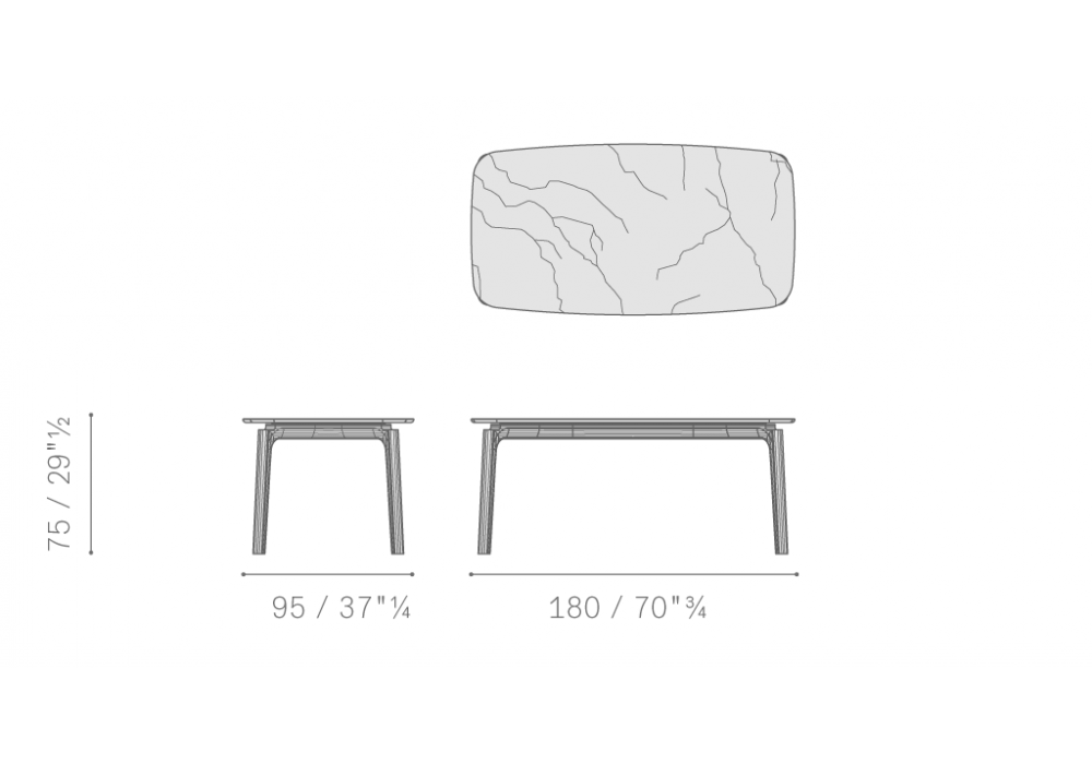 The entire perimeter of the top is meticulously rounded and seems almost floating, and it is joined to the base in a sinuous way.