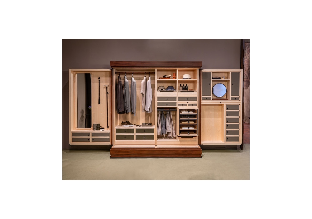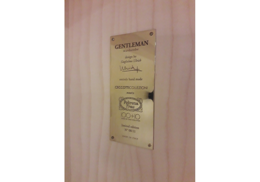 Gentleman Limited Edition designed by Guglielmo Ulrich for Ceccotti Collezioni is an iconic wardrobe that has been reissued in eleven special pieces, with the interior also reworked thanks to the stylistic contribution of Poltrona Frau, with the expertise of Jean Paul Menicucci, who has worked in the world of fashion and leather goods for over 30 years, and in harmony with the heirs of Guglielmo Ulrich, who participated in the project.