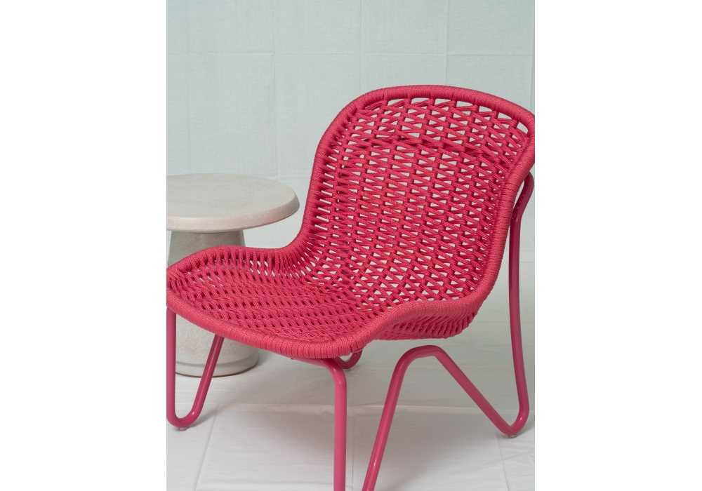 Jardín designed by CRS Paola Lenti is an armchair with fixed cover woven by hand with flat Twiggy yarn cords. The structure is in glossy painted aluminum with plastic tips. The Jardín collection is a tribute to the architect and designer Clara Porset.