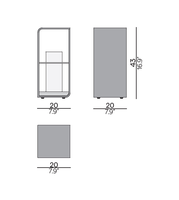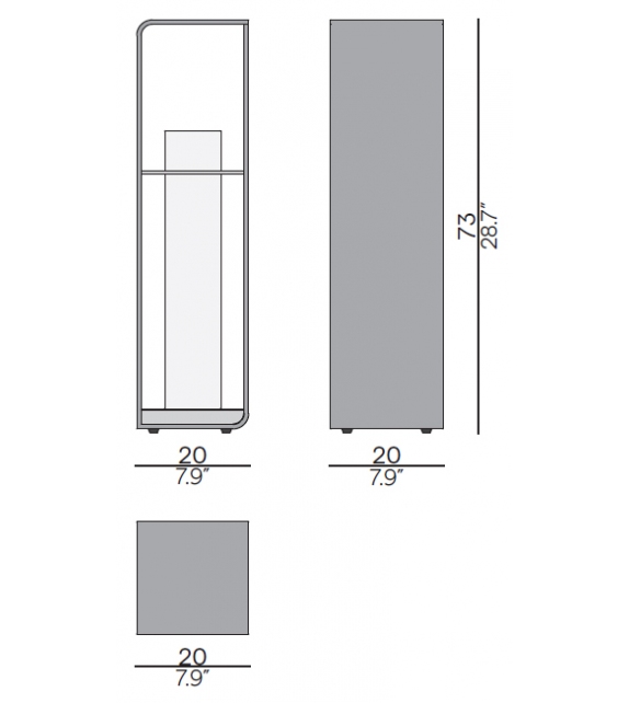 | Dimensions | • 20 x 20 x H 28 cm; • 20 x 20 x H 43 cm; • 20 x 20 x H 73 cm |