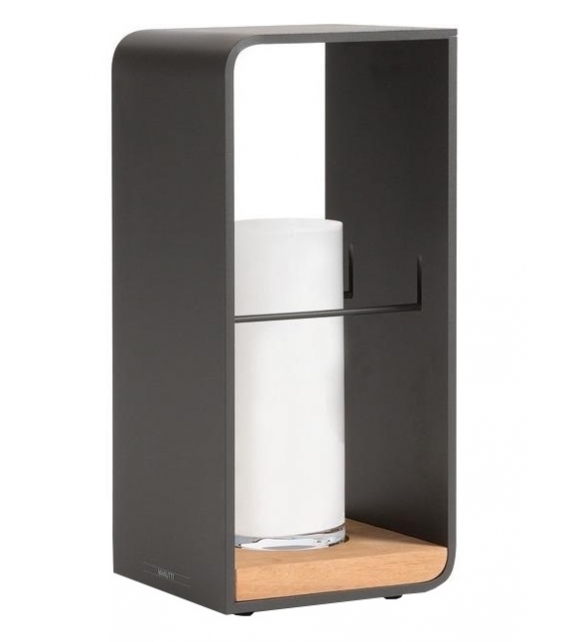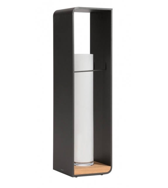 Lumo designed by Koen Van Extergem for Manutti is a LED outdoor lamp with aluminum and Iroko structure.