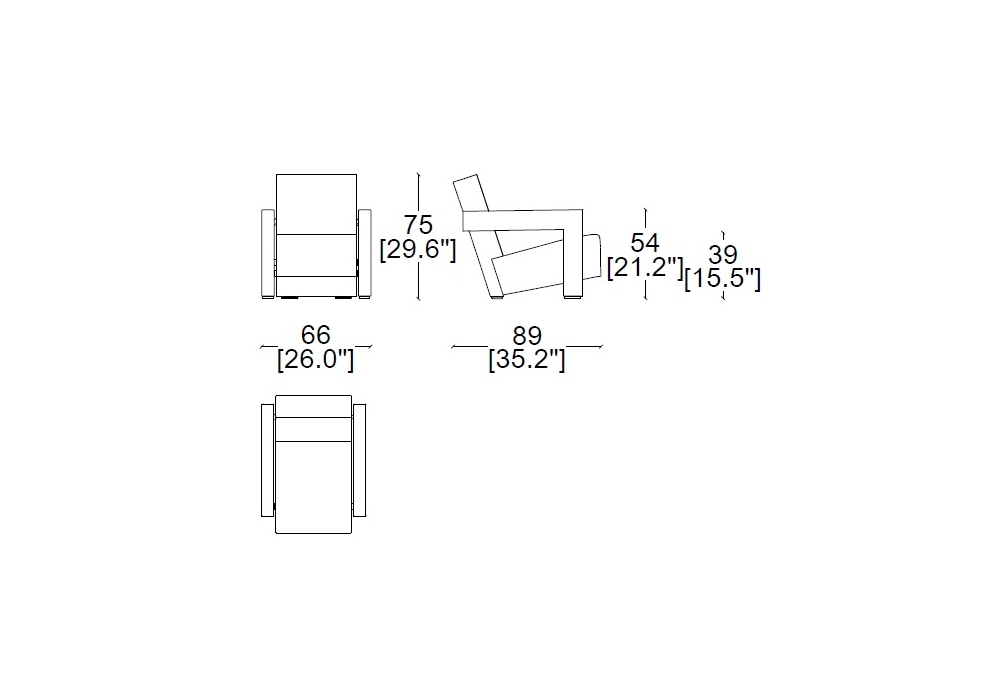 637 Utrecht XL designed by Gerrit T. Rietveld for Cassina is an armchair made with fabric upholstery. Blanket stitch.