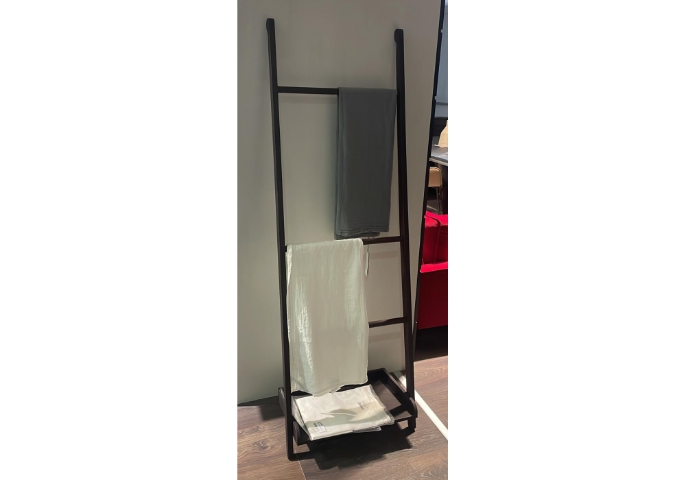 Stairs designed by Agape is a towel holder made entirely of brown oak wood.