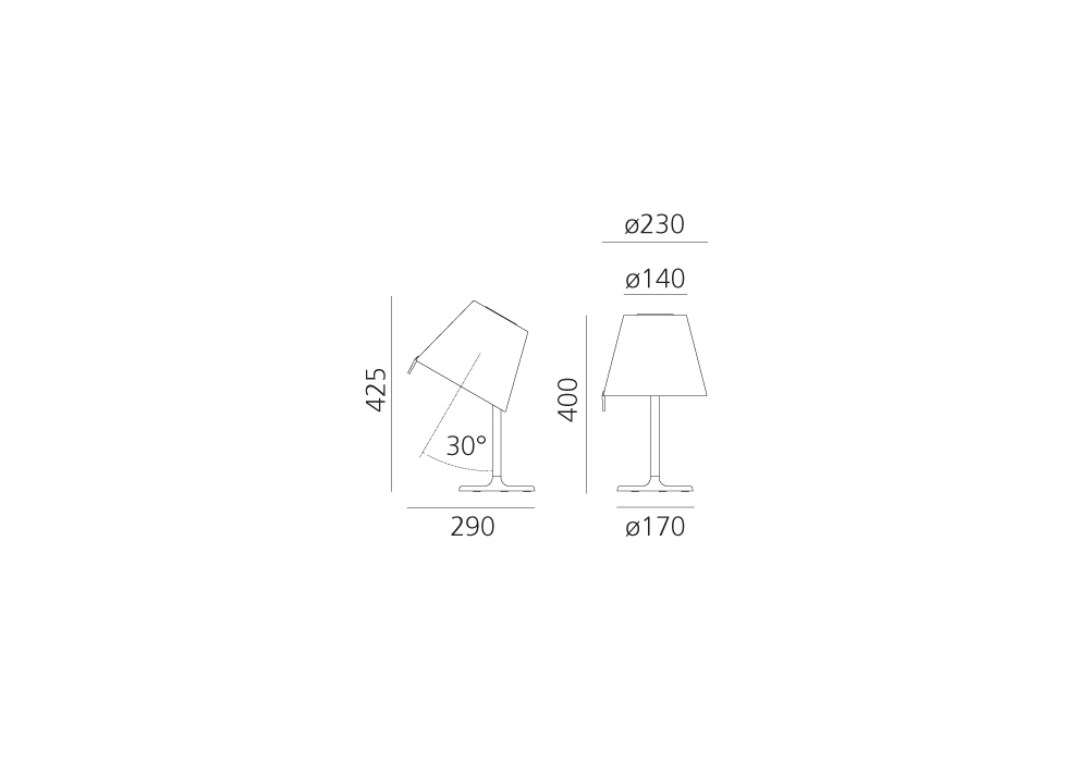 Melampo Notte designed by Adrien Gardère for Artemide is a table lamp composed of technopolymer, satin, aluminum and zamak. The diffuser offers the possibility of being tilted in three positions, so as to project the light as you wish up to the maximum angle of 30°.