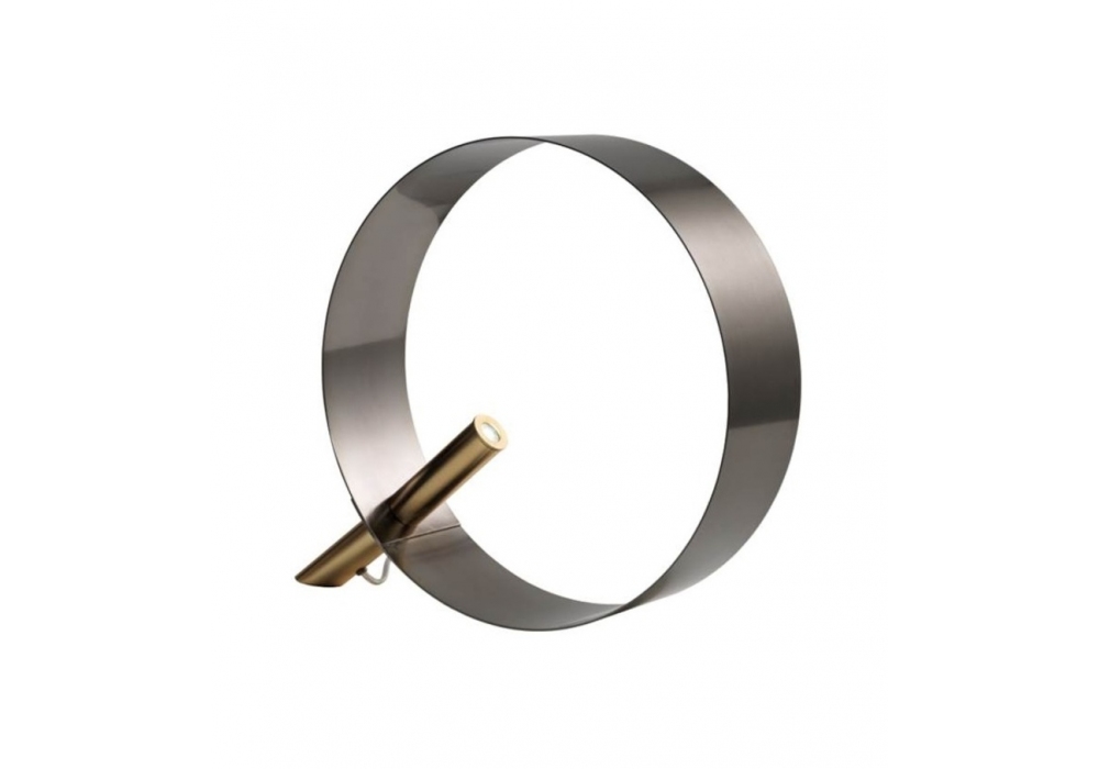 Led Loop T designed by Riflessi is a table lamp composed of a graphite structure and a metal ring painted with galvanic satin treatment. Electric cable in black fabric.