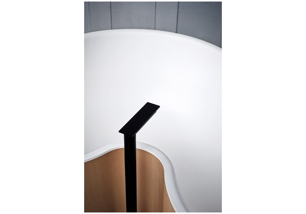 Sen designed by Gwenael Nicolas for Agape is a single hole floor standing mixer tap in brushed anodized aluminum with black finish.