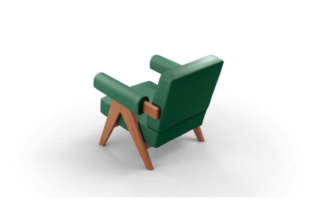 053 Capitol Complex Armchair Pro designed by Pierre Jeanneret for Cassina is an armchair with padded seat and backrest. Structure in solid natural teak wood and leather upholstery.