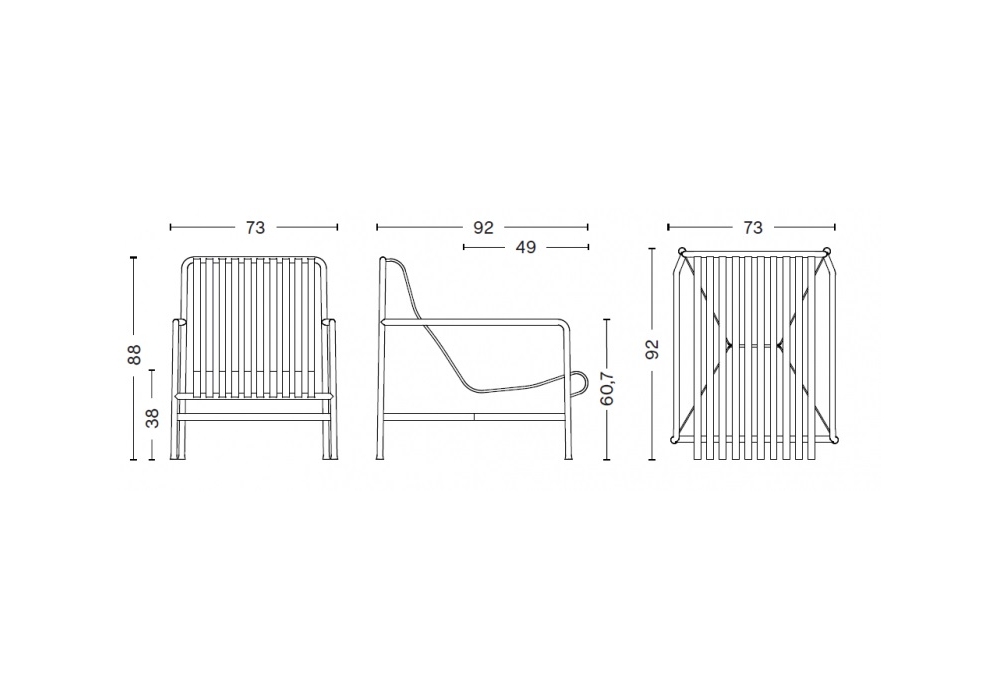 Palissade designed by Ronan & Erwan Bouroullec for Hay is an outdoor lounge chair high made in powder coated steel.