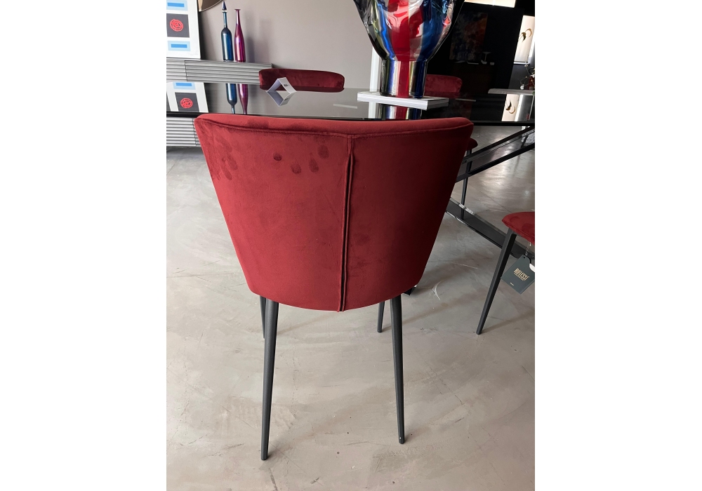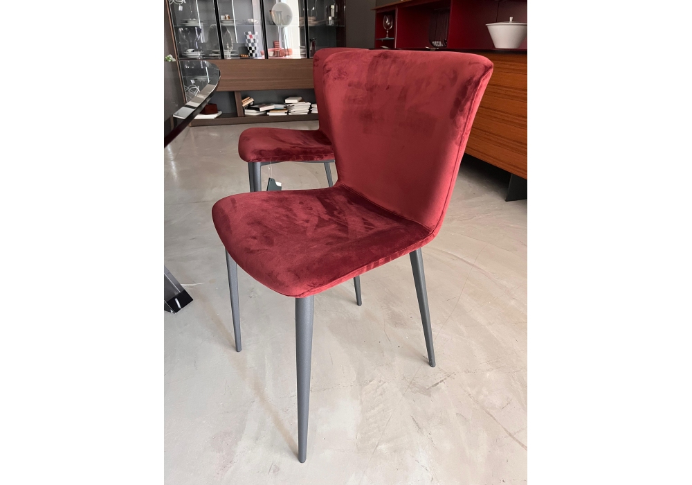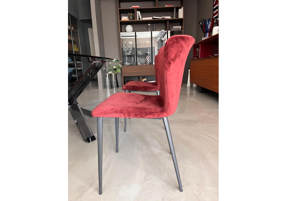 Giò designed by Riflessi is a chair with shell in plastic technopolymer, padded and covered in fabric. Metal painted legs. Decorative zipper on the back.