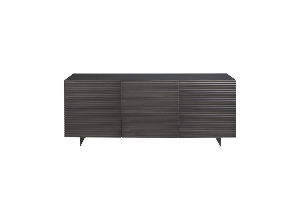 Ola designed by Riflessi is a sideboard with doors and fine in lacquered painted hand-brushed wood, processed with a special wavy incision. Push-Pull opening and internal transparent crystal shelves.